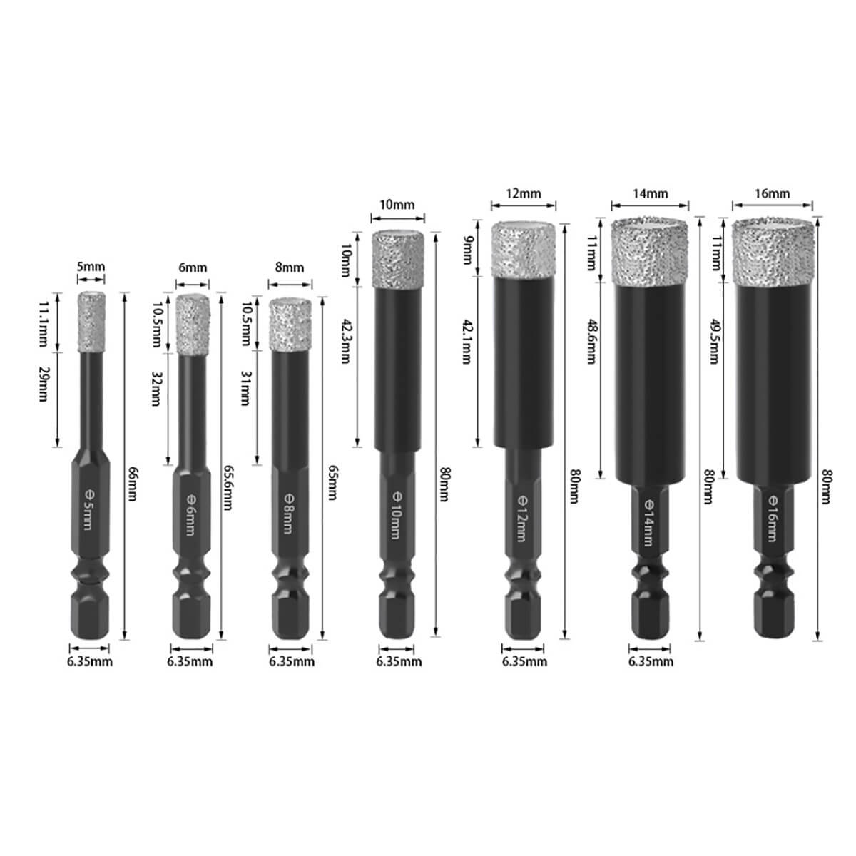Набор алмазных коронок Verest (7шт 5-16 мм)